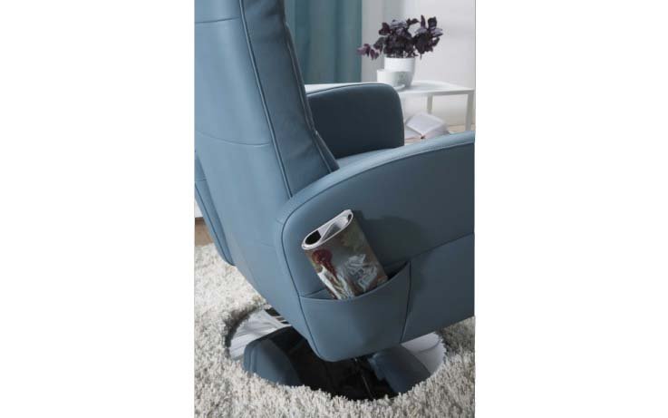 Elegantiškas fotelis su reklaineriu. Fotelio kojos mechanizmas leidžia suktis apie savo ašį.
