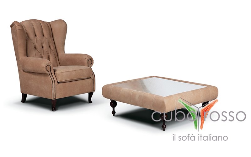 Tai angliško stiliaus klasikinis minkštas baldas.Išranki tokio dizaineriško baldo architektūra pabrėžta paplonintais volelio formos porankiais ir stilingu nugarėlės dekoru „capitone”.