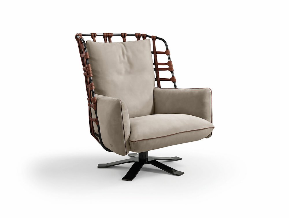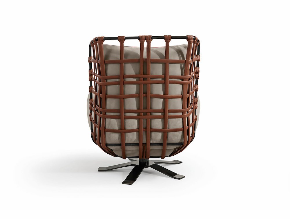 Cocoon fotelio korpuso pagrindas padarytas iš juostų, apsiūtų natūralia oda. Juostos persipina tarpusavyje sudarydamos lengvą, tarsi ore kabančią drobę. Persipynusios dinamiškos juostos sudaro bendrą visumą su minkštomis sėdimos ir nugarinės dalies pagalvėmis. Sukurtas italų meistrų amatų pagrindu, fotelis priduos elegancijos bet kokiai namų aplinkai.